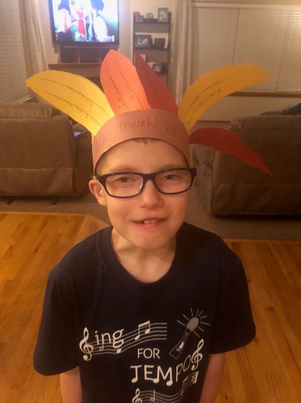 It’s the perfect time of year to talk to kids about what they are grateful and/or thankful for. It can be as simple as going around the dinner table each night telling everyone something you are thankful for. Or it could be making a Thanksgiving centerpiece of a Fall tree with leaves each representing something a family member is thankful for. We made a centerpiece one year and I loved seeing what my kids put on there: family, teachers, our home, sports, each other. This year Jack made a hat at school with feathers representing his thankfulness. I have seen people write on pumpkins with black markers. Or each family member could write something they are thankful for on a piece of paper and they could be read aloud at the Thanksgiving table.