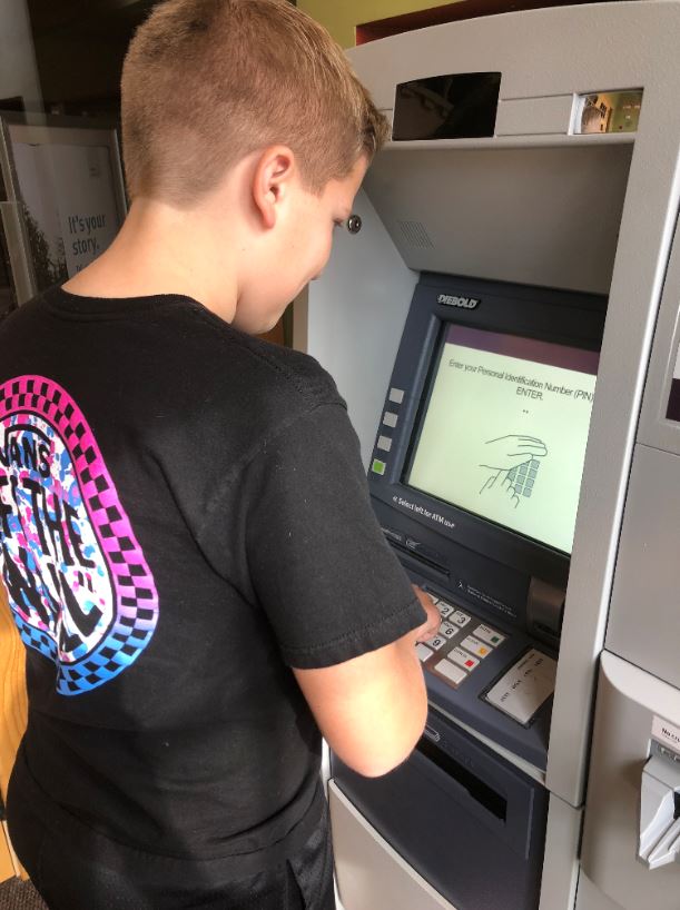 We signed him up for a debit card with no overdraft protection. When the money is gone, it is gone. We also went over the differences between a debit card and a credit card. Since getting the account I have taken him to the ATM and taught him how to use it and how to deposit his checks. We talked about keeping his debit card in a safe place and never giving out his PIN number. He just got money for his 13th birthday and we will head to the ATM again to deposit some of his birthday money into his account. I love knowing his money is safe at the Credit Union and that we are teaching him important money lessons long before he heads out into the world as a young adult.